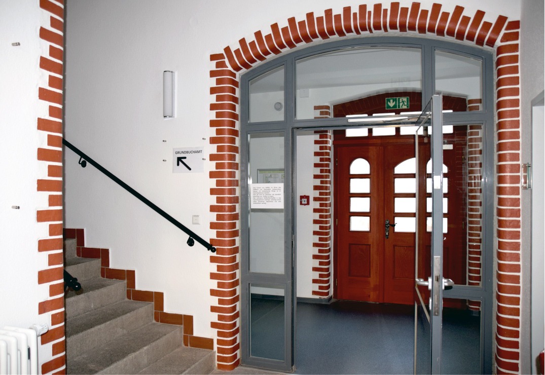 Die Liegenschaft des Amtsgerichtes Döbeln bestand ursprünglich aus zwei historischen, unter Denkmalschutz stehenden Gebäuden, die 1899/ 1900 errichtet wurden. Die historischen Fassaden sind durch Erker, Türmchen, Zwerchgiebel sowie Fenstereinfassungen aus Sandstein gestaltet. Ein Teil des Planungsauftrages bestand im Umbau und der Sanierung der Innenräume der denkmalgeschützten Bausubstanz. In einem weiteren Abschnitt erhielt das Grundbuchamt mit seinen in weiten Teilen historischen Grundbuchakten einen modernen und zeitgemäßen Neubau mit entsprechendem Empfangsbereich. Als große Herausforderung für alle Beteiligten erwies sich die Sanierung und Instandsetzung der historischen Klinkerfassade des Haupthauses.