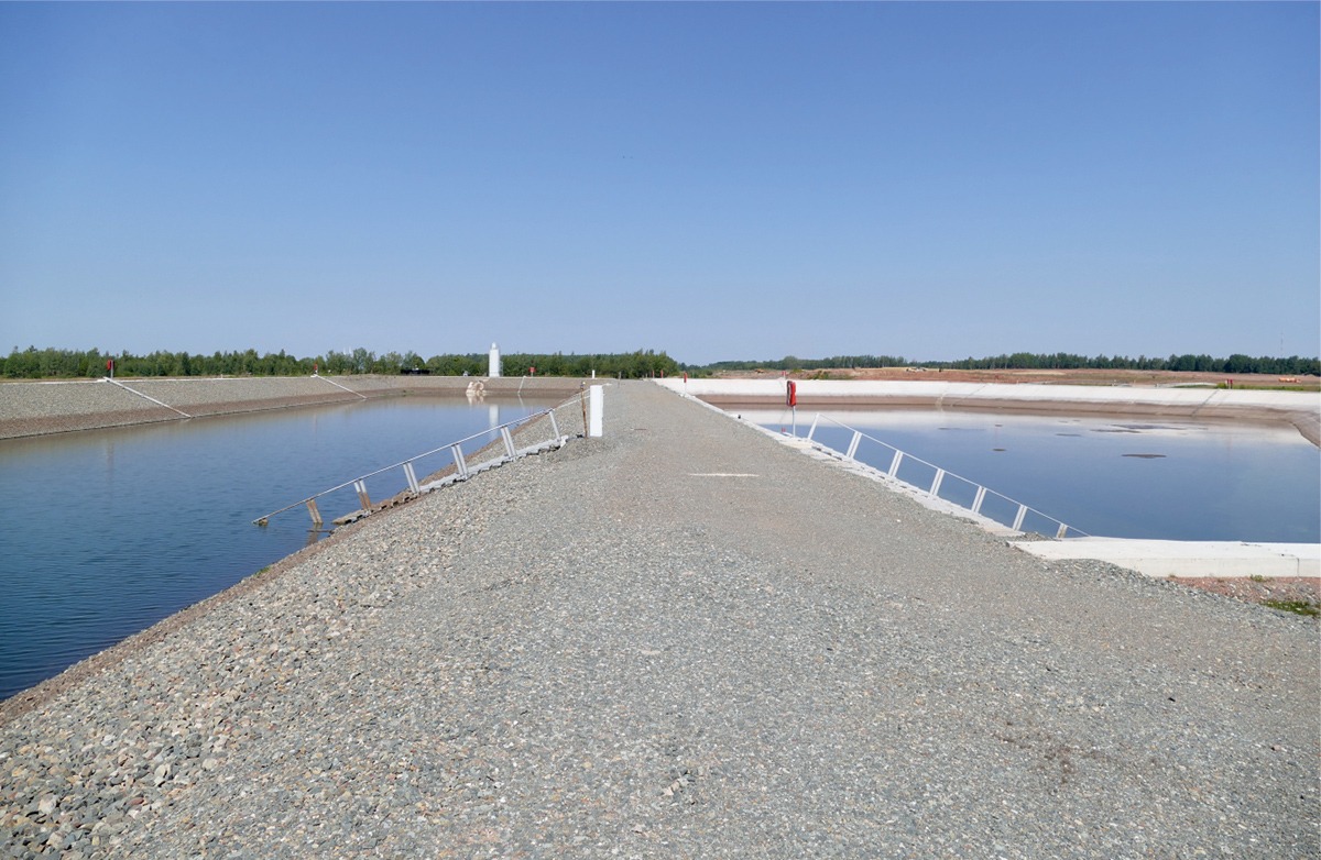 Das Schlammabsetzbecken weist eine Speicherkapazität von 21.000 m³ auf. Es wurde als Erdbecken mit Innendichtung (Kunststoffdichtungsbahn) neben der technischen Anlage errichtet.