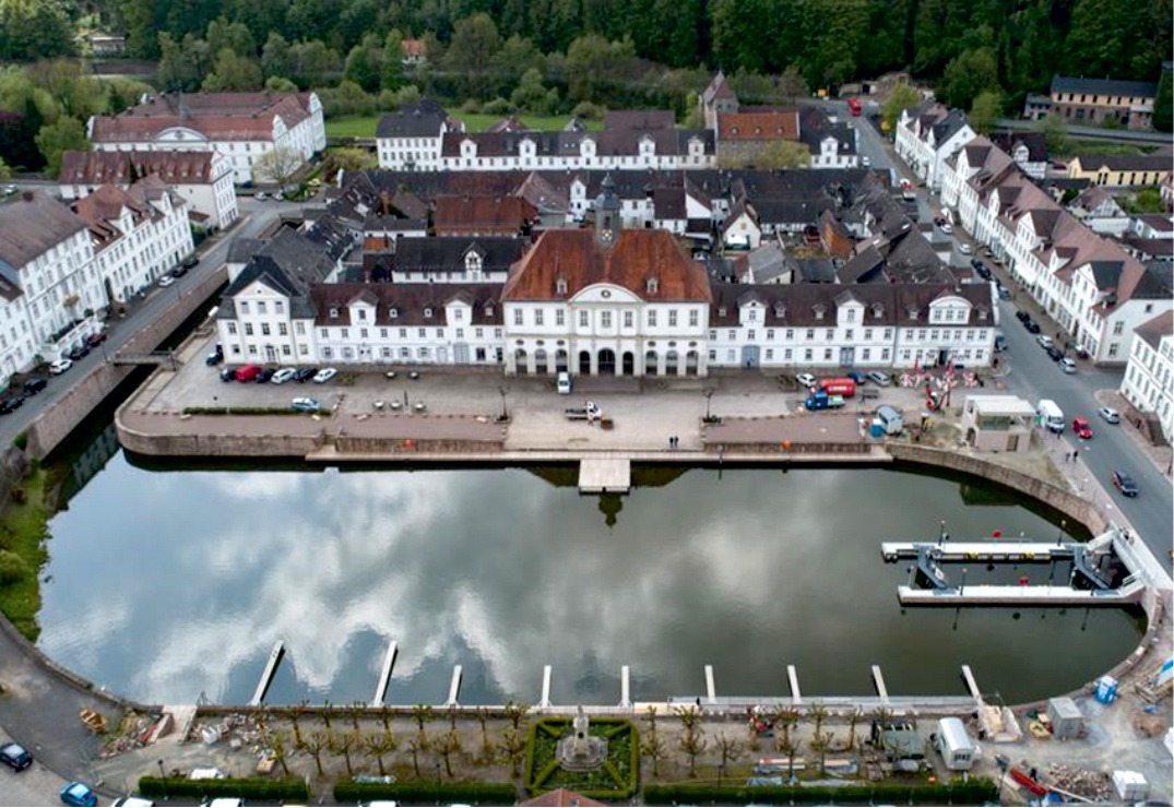 - Wiederanbindung des historischen Hafens in Bad Karlshafen an die Weser bestehend aus Schleusenneubau und Instandsetzung der Hafenmauern BA 2.1/2.2