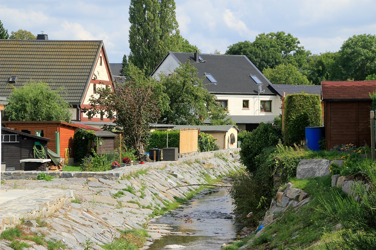 - innerstädtischer Hochwasserschutz entlang des Pleißenbaches auf einer Länge von ca. 150 m