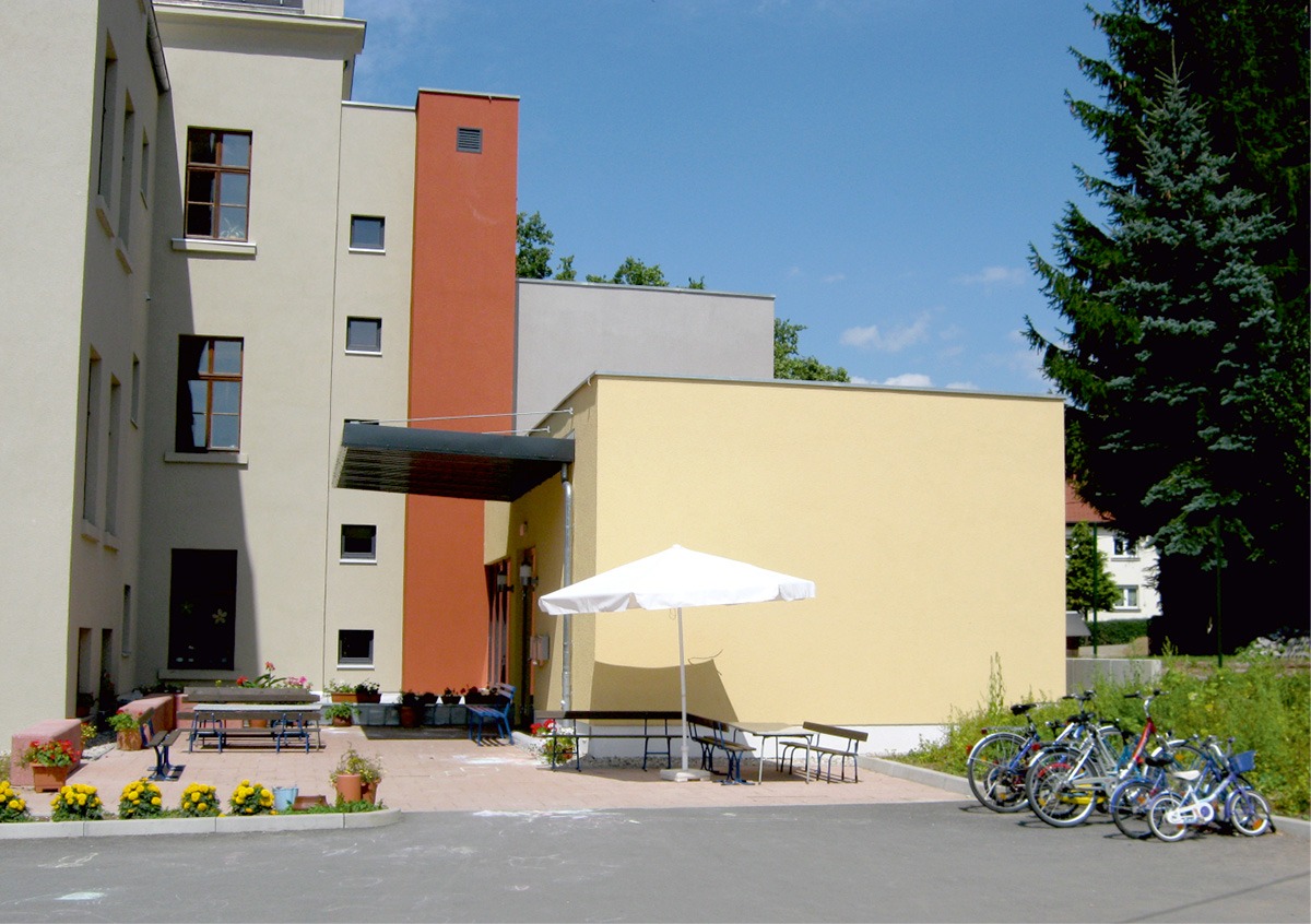 Das historische Schulgebäude aus dem Baujahr 1906 war seit 2003 leerstehend. Die denkmalgeschützte Bausubstanz wurde saniert und in zeitgemäßer, aber rücksichtsvoller Form durch einen Erweiterungsneubau ergänzt.