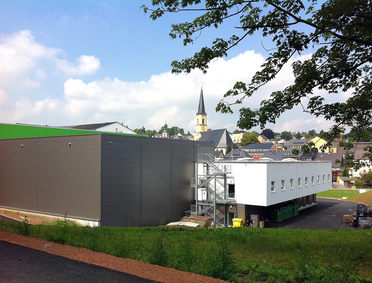 Die Fertigungshalle hat eine Brutto-Grundfläche von 357m². Im Erweiterungsneubau sind Räume für das Lager mit einem Palettenregalsystem untergebracht.