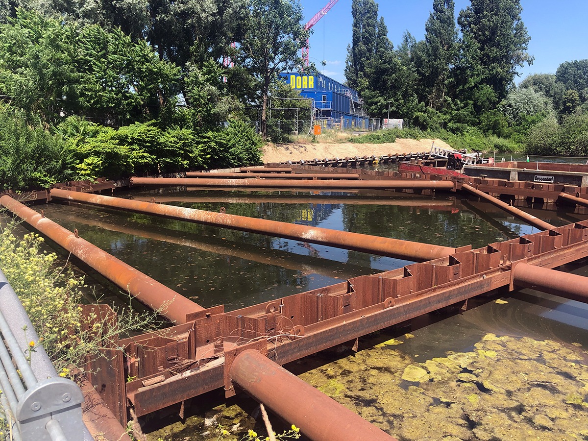 Die Ufergrenze soll beibehalten werden. Die Böschungen sind durch Bodenaustausch und Einbringen geeigneter unbelasteter Substrate zu stabilisieren. Weiterhin wird der Übergangsbereich zwischen Freiwasser und Sediment abgegrenzt, um den Schadstoffeintrag in das Gewässer zu reduzieren. Nach erfolgtem Voraushub mittels Baggertechnik ist der Uferbereich mittels dem Wabenaustauschverfahren zu sanieren. Die Arbeiten erfolgen über die Wasserseite vom Ponton aus.